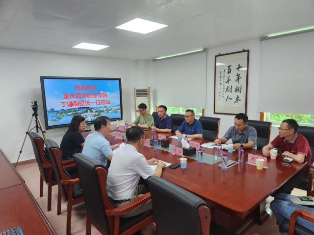 本站讯 4月17日,重庆商务职业学院副校长丁谦一行6人来访我校,副校长朱小平和现代教育技术中心主任何磊、财会与金融学院院长李丹在行政楼302会议室与来宾举行座谈会,就两校共同推进智慧校园和网络学习空间建设等方面进行深入交流。