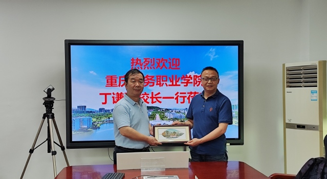 丁谦代表重庆商务职业学院向我校赠送由重庆商务职业学院学生制作的艺术品。