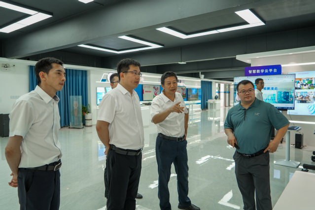 朱小平向畅明一行详细介绍了学校智慧校园的建设举措。学校智慧校园建设与校企合作、产教融合深度衔接,与华为签署战略合作协议,共同打造“云中广科”。结合“双高计划”建设方案,学校构建面向全校教学、管理和服务的统一混合云底座,坚持“应用为王”,设计数字校园应用系统,将数字技术深度融入人才培养全过程,创新实训教学模式,主动对接行业企业需求,打造“产教融合”人才培养新模式,构建“校企合作”数字校园新形态。未来,学校将继续以落实立德树人根本任务为导向,推广大规模个性化人才培养,开展数字化教育评价改革,达成“云中广科”建设目标,为“云中高职”形成可复制推广的发展模式和解决方案。