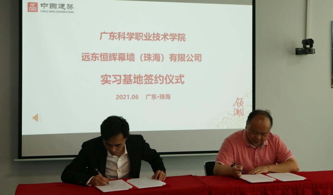 本站讯 为拓宽毕业生就业渠道,加强校企合作,了解市场需求变化,6月23日下午,学校党委委员袁晓斌带队,建筑工程学院副院长黄鹄、建筑工程技术专业负责人彭霞锋老师、实训部主任吴志贤老师、辅导员廖小敏老师一行5人前往远东恒辉幕墙(珠海)有限公司走访调研并签订校外实践基地协议。