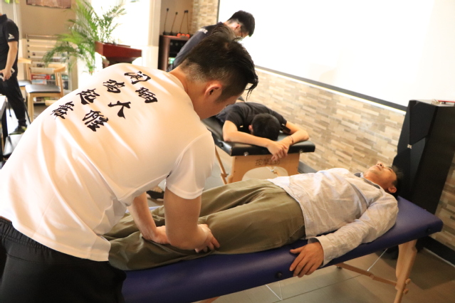 周志俊副教授绘声绘色的讲解脊柱运动损伤的预防与管理(日常生活工作正确的坐、卧、行、站、运动姿态),分享了幸福五维密码:1身体健康、2家庭幸福、3工作事业、4人际关系、5兴趣爱好,并现场带领大家学以致用的体验一方米自然健身法。讲座结束后谢国成医师及同行人员为在场20多名教职工,进行免费体检:针对各种疼痛的诊(断)、松(解)、正(骨)、训(练)、(呵)护,谢国成医师耐心询问大家的身体状况,做出专业的体检分析,老师们纷纷表示受益匪浅,经过诊断和治疗后,身体问题得到缓解,衷心感谢并诚挚邀请专家们下次再来。