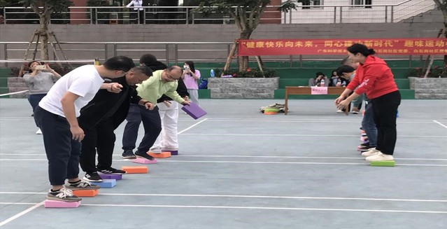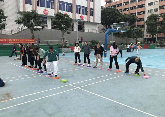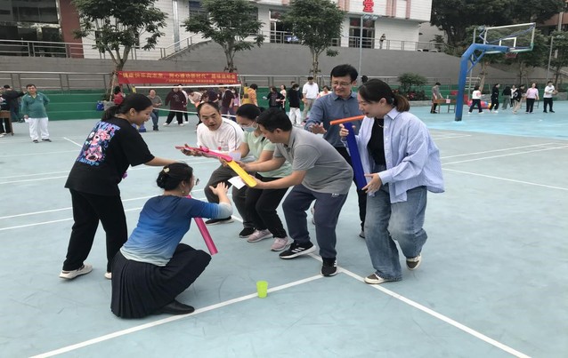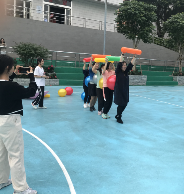 本次趣味运动会设置了珠行万里、摸石头过河、一字长龙运球、定点投篮等项目。运动场上,教职工个个精神饱满,热情高涨。