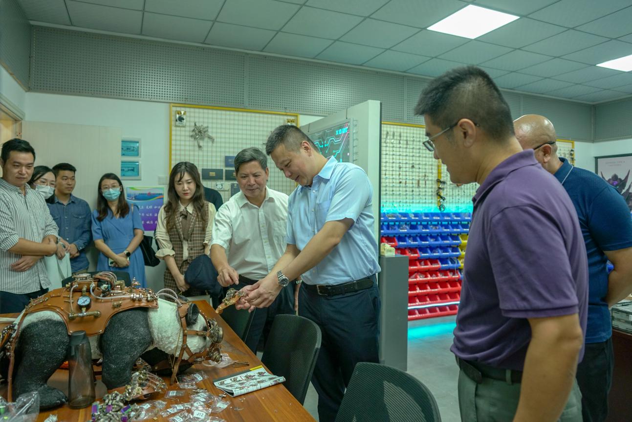 黄仕初代表学校对叶桂平副校长一行来访表示热烈欢迎。在黄仕初的带领下,叶桂平一行参观了学校计算机工程技术学院、机器人学院和艺术设计学院。计算机工程技术学院副院长杨忠明介绍了华为数字技术体验中心和教育部软件工程应用技术协同创新中心,特高专业群项目化体系人才培养特色及成果;机器人学院院长余正泓介绍学院实训室的情况及人才培养的特色和亮点;艺术设计学院党支部书记艾泓泽、副院长曹春晓介绍了艺术工作室及学生优秀艺术设计作品。
