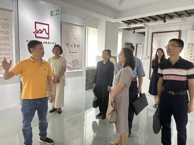 随后,谢岩梅一行参观了物联网工程学院岭南文化传承与教学工作室,认真听取了有关人员对工作室的介绍。谢岩梅表示,岭南文化传承与教学工作室特色鲜明、内涵丰富,充分发挥了引领作用,在构建教学与服务双功能校内实践基地模式中取得了良好的效果,应当继续保持。