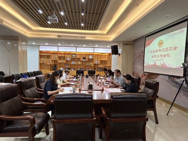 本站讯 6月14日下午,广东省教科文卫工会主席谢岩梅带队调研我校工会教代会、职工之家建设、工会工作创新等工会工作。广东省教科文卫工会副主席胡建钢、二级调研员陈平州、四级调研员余进陪同调研。学校党委委员刘晓华,学校工会常务副主席江梅,学校工会委员、物联网工程学院党总支书记、分工会主席初蕊及有关负责人参加调研。