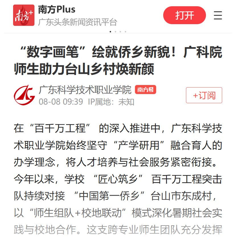 南方+《“数字画笔”绘就侨乡新貌!广科院师生助力台山乡村焕新...