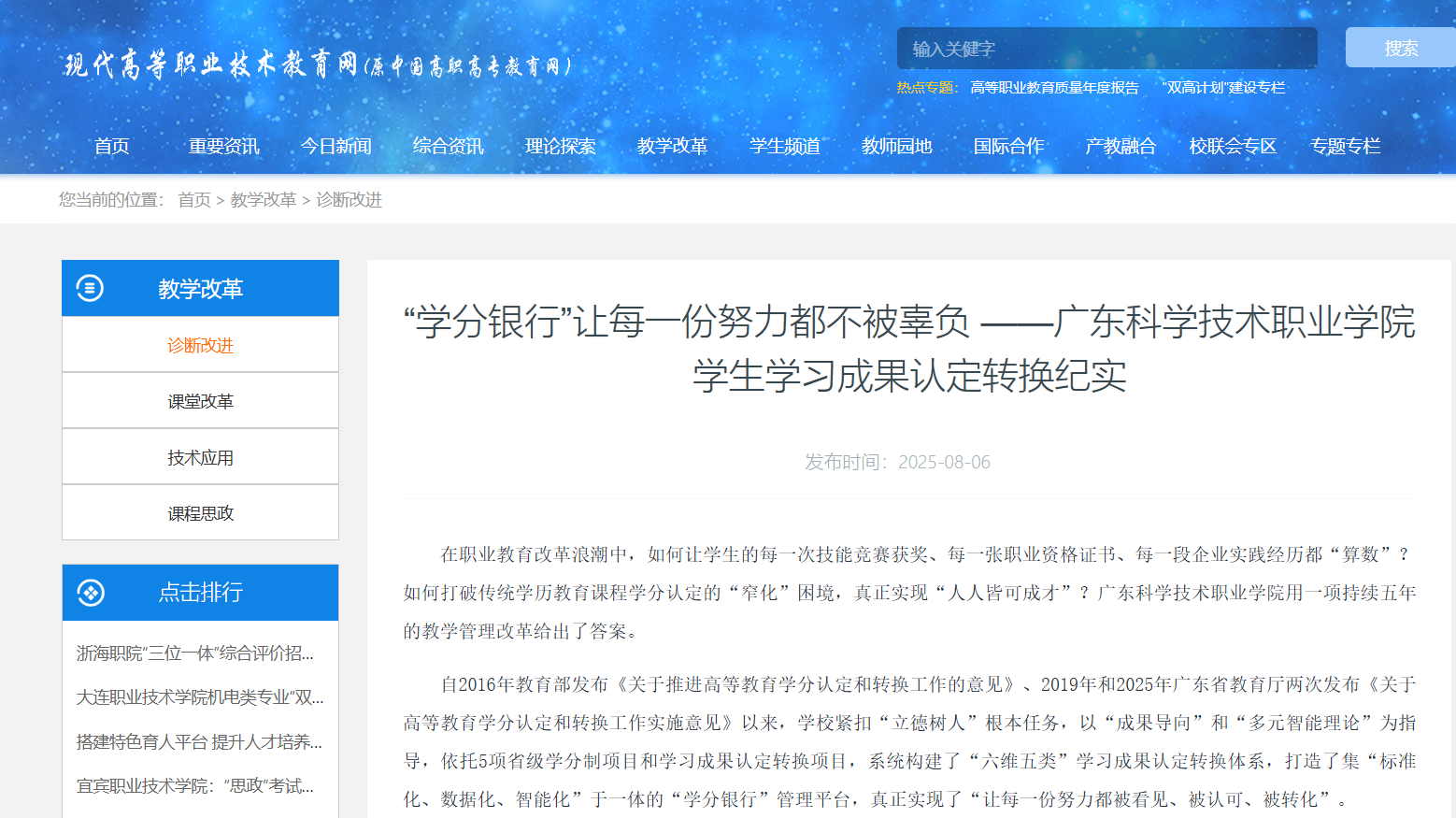 现代高等职业技术教育网《“学分银行”让每一份努力都不被辜负——...