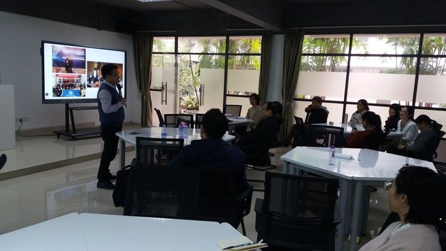 宋结焱从自身经历开始讲解,通过商业模式画布在“双语教学”、“案例开发与教学”中的应用,逐渐引入主题,为老师们介绍了陇南商业扶贫的基本内容,扶贫第一线的基本情况,以及目前陇南电商扶贫战略。通过“成县电子商务协会”、“桑葚酒众筹”、“小崔蜂蜜”三个案例带领老师们深入了解农村电商的发展现状及成功的典型案例。