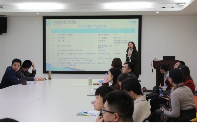 最后,党总支副书记曾观红、副院长赵莉和刘电威分别在学院总部署下,作分管工作的具体安排,细化任务、明确分工与落实责任,确保2019年学院各项常规工作有条不紊地开展,重点工作提前准备、齐力攻破,使学院2019年发展更上一台阶。