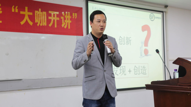 开幕式后进行了“大咖开讲”系列讲座的第一讲。顺丰速运黄文浩经理作了题为《创新,理念与分享》的专题讲座。黄经理首先谈了自己对创新的理解;接着结合自己在顺丰创新的实例,尤其是珠海2019年春节花市项目的创新开发,从模式、操作以及方法上颠覆了大家对快递公司一贯的看法,获得了更多的政企合作、更多的企业价值、更美好的生活;然后给出了创新方程式:知识积累+勇敢想象+迅速行动;最后鼓励大家积极投入创新、大胆开展创新。黄经理讲解当中有市场分析的过程,有思维模型的构建,有整合资源、协调各方、推进落地的方式方法,讲解非常接地气,对大家启发很大。