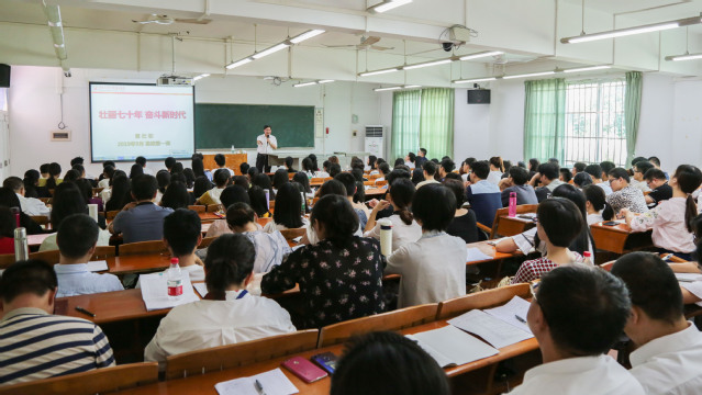 本站讯(通讯员:闫茹 摄影:李泽宽)根据《广东省教育厅关于做好2019年秋季学期高校党委书记、校长和院(系)党组织书记、院长(系主任)以及中小学党组织书记、校长上第一堂思想政治理论课工作的通知》要求,为做好2019年秋季学期“第一课”工作,9月25日下午2点,我校党委书记黄仕初在J3107,以《壮丽七十年 奋斗新时代》为题,为我院2019级电子商务专业4班和国际经济与贸易专业2班讲授了新学期思政第一课,我院党员教职工到场聆听学习。 课上,黄仕初首先指出今天这堂思政课的目的是增强“四个自信”,明确读大学的价值与意义所在,珍惜来之不易的幸福生活。他从国内政治、经济、文化、国防外交和党的领导等几个方面讲社会主义革命和建设为当代中国发展进步奠定根本政治前提和制度基础,讲改革开放让中国人民和中华民族大踏步赶上新时代,并以全新的视角带领大家认识70年社会主义革命和建设的现实启示,最后要求大家思考如何在习近平新时代中国特色社会主义思想指引下为实现中国梦继续奋斗! 本次思政课结合了“不忘初心、牢记使命”主题教育,主题鲜明、逻辑缜密、思想深邃,课上同学老师们认真听讲、积极互动,反响热烈,加深了师生们对新中国70年历史的认识和理解,激发了党员教职工和广大学生的爱国之情,强化了爱国之志。 |