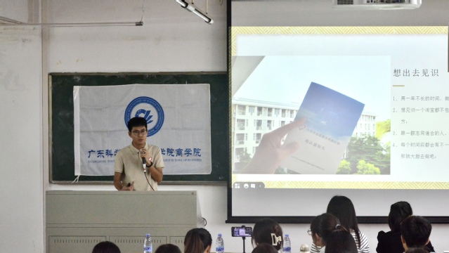 吴警浩在会场为大家讲解西部计划和毕业生相关优待政策,通过视频、相片等方式分享了他在新疆服务两年的所见、所闻、所感和所获,他表示作为一名广东学子,第一次与一群志愿者乘坐70多个小时的火车抵达祖国的西部,这份勇气和热血让他在后面的两年工作中时刻以高标准要求自己,并高质量完成两年的志愿服务工作。他鼓励师弟师妹不要辜负青春年华,要勇于挑战自我,争做对国家、社会有用之人。