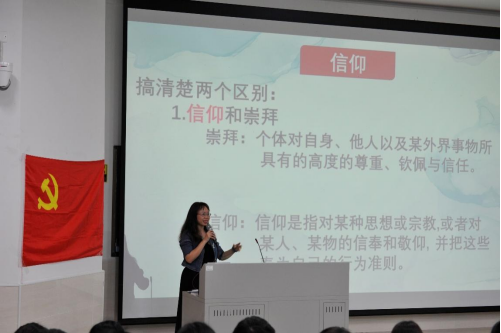 在课堂培训中,党总支副书记王云飞以“心中有信仰,脚下有力量”为题,以“中国共产党人的信仰是什么?”“你为什么申请加入中国共产党?”“你想做什么样的党员?”三大问题为主线,结合典型人物和党史故事,为学员上了一堂精彩的专题党课,并要求大家接下来要学党史、懂时政、定人生目标、定政治信仰,将初心使命内化于心,外化于行。