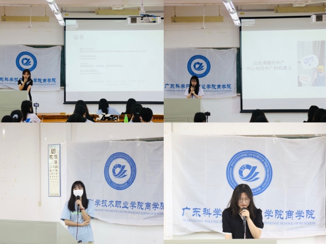 本站讯 为迎接党的二十大胜利召开,大力弘扬爱国主义精神,教育引导学生培养爱国之情、砥砺报国之志、成就栋梁之才,增强我院学风建设,优化育人氛围,充分发挥优秀学子的引领示范作用,6月1日下午,商学院“技能成才,强国有我”主题教育活动之【商院榜样】优秀学生分享会第11期在J2-311顺利举行。此次分享会邀请获得广东省职业院校学生专业技能大赛关务技能赛项一等奖的郭润歆、林玫榕、林少燕、卓美惜四位同学进行经验分享。商学院学工部辅导员朱菊秀以及900余名学生以线上线下形式参与活动。