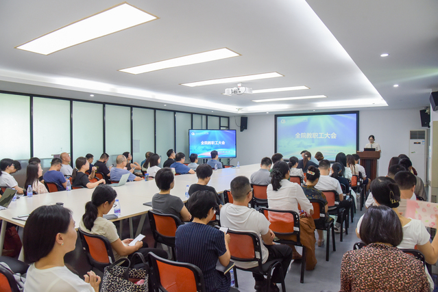 本站讯  2025年9月6日上午,为总结上一学期工作成果,分析学院发展存在的问题,提前谋划、凝聚力量、锐意进取推动学院高质量发展,商学院在S1-411召开2025-2026学年第一学期全院教职工大会,全院教职工参加了本次会议。