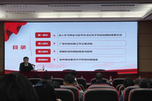 开班典礼上,李旭东副厅长代表广东省科技厅致辞,对远道而来的西藏科技系统各位学员表示欢迎,并为培训班讲授第一个专题“坚持创新驱动发展 加快实现科技自立自强”——从深入学习领会习近平总书记关于科技创新的重要论述出发,介绍了广东省科技创新工作主要进展情况,并针对当前内外环境变化带来的科技创新挑战与发展趋势,特别是结合广东省科技创新方面的薄弱环节和问题,重点介绍了广东加快建设更高水平科技创新强省,实现科技自强自立的思路和举措,主要包括:加快建设粤港澳大湾区国际科技创新中心、深入推进新一轮重点领域研发计划、高水平建设区域创新体系、深化科技体制机制改革、强化对美好生活的科技支撑等。