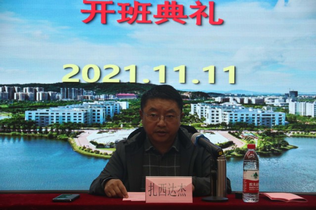 扎西达杰副厅长代表西藏自治区科技厅讲话表示,今年是西藏和平解放70周年,习近平总书记专程到西藏考察调研,看望慰问西藏各族干部群众,强调要全面贯彻新时代党的治藏方略,谱写雪域高原长治久安和高质量发展新篇章。在这样一个背景下举办科技兴藏人才培养工程西藏科技管理干部培训班,意义十分重大。同时表示,一直以来,广东省高度重视对口支援特别是科技援藏工作,通过干部挂职、举办交流培训班、科技项目合作等多种方式,助力西藏科技创新、产业发展和人才队伍建设,取得了丰硕的成果,对此表示感谢。本次培训班是再一次放在“改革开放的排头兵”广东省举办,对于深入贯彻习近平总书记关于西藏工作的重要论述和新时代党的治藏方略,进一步提高西藏科技管理水平也是一个很好的契机。最后对培训班提出三点要求:一是珍惜机会,认真学习,提高自身素质、业务能力、工作水平;二是结合实际,深入思考,做到学而知之、思而知之、悟而知之、以行践之;三是遵守纪律,注意形象,遵守中央八项规定和培训班各项规定。