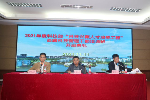 11月11日上午,培训班在我校广州校区网真会议室举行开班典礼,校党委委员、继续教育学院袁晓斌院长主持。出席开班典礼的领导有:西藏自治区科技厅扎西达杰副厅长、广东省科技厅李旭东副厅长、我校江乐忠副书记、西藏自治区科技厅规划处肖建新处长和广东省科技厅人事处严军华副处长等。
