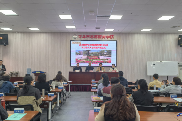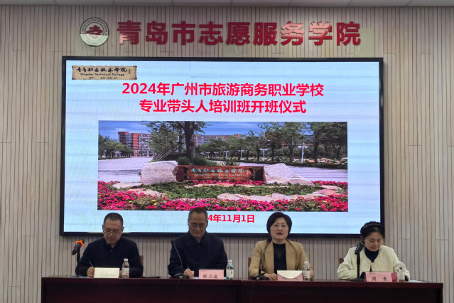本站讯 11月1日上午,我校通过公开竞标方式承办的“广州市旅游商务职业学校2024年专业带头人培训班”在青岛隆重开班,青岛职业技术学院培训学院党总支书记赵悦、广州市旅游商务职业学校校长张立波、我校继续教育学院副院长彭劲松出席开班典礼,开班典礼由青岛职业技术学院培训学院培训部主任周青主持。