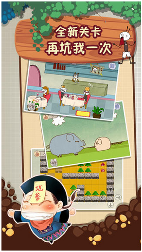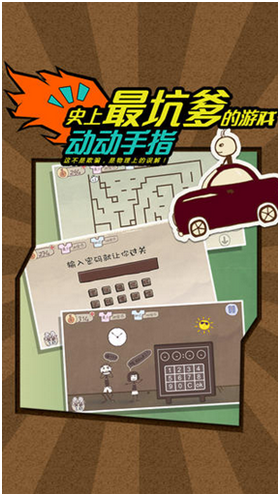产品描述:是继《坑1》及《坑2》火遍中国大陆及港澳台之后,原创团队精心推出的续作。《坑1》及《坑2》共获得超过3000万的游戏玩家,目前还在持续增长中。《坑3》依然是24个关卡,一如既往地遵循逆思维以及打破常规意识束缚的原则,游戏创意依旧,玩法也依旧坑爹,除了逆向思维解谜外,还加入了敏捷操作的元素,并在游戏美术上作了一次大的升级,音效更加专业,并采用欢快风格为主,游戏内容更加搞笑,相信能再次风靡一时。