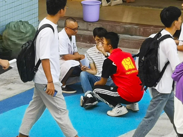 天空渐亮,阳光初照,学生党支部工作人员身穿党服、马甲提前到23栋集合。在体检工作前,党支部工作人员就已根据实际情况的需要把工作人员分为了四组,分别为:门卫小组、护理小组、巡视小组、机动小组。其中门卫小组主要是负责看管23栋的前后门,控制现场人数,以免发生混乱,并严格规定只能前门进、后门出。护理小组则在体检现场配合医生护士,抽血现场两侧各有工作人员负责护理工作,如有发现学生头晕或脸色苍白、出冷汗则立即安排其坐下或躺下休息,并联系现场医生护士。巡视小组主要负责维持现场秩序,疏导队伍,防止乱扔垃圾、插队等不文明现象的发生。在志愿工作者的认真指引和合理安排下,体检工作有条不紊地进行着。