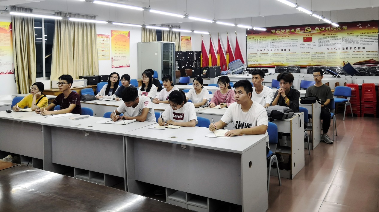 本站讯(通讯员:莫伟澜、刘远萍 摄影:吴界平)为学习贯彻习近平新时代中国特色社会主义思想和党的十九大精神,积极开展主题党日活动,扎实推进“不忘初心、牢记使命”主题教育,教育引导支部党员守初心、担使命,2019年10月22日晚,计算机工程技术学院软件技术学生党支部在实训三521开展“不忘初心、继续前进”主题党日活动,集中观看了政论专题片《不忘初心 继续前进》第一集《举旗定向》。