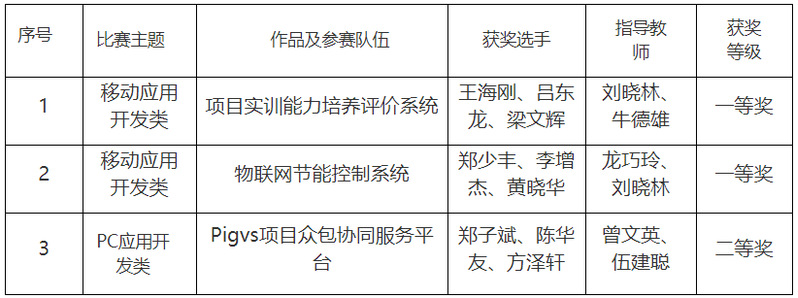 本届竞赛分为基于移动互联网的应用软件开发、基于PC的互联网应用软件及系统的开发、基于大数据平台的软件及系统开发和基于云平台的信息安全架构搭建与应用四大主题。计算机学院参加了基于移动互联网的应用软件开发、基于PC的互联网应用软件及系统的开发、基于云平台的信息安全架构搭建与应用三项主题的比赛,推选的13支代表队参加了决赛,获得一等奖4项、二等奖5项、三等奖2项的佳绩,比赛成绩位居全省第一。