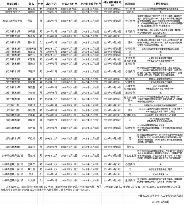 学院党总支2019年下半年拟接收为中共预备党员公示