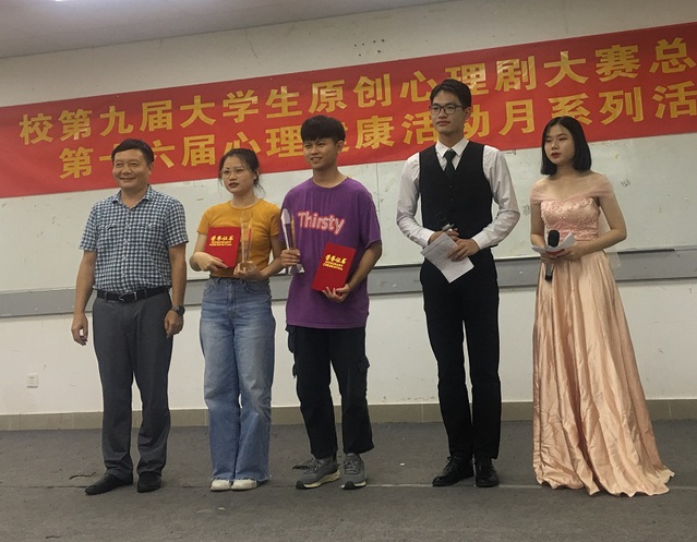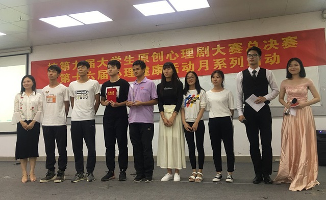 本站讯(通讯员:何晓薇)2019年5月17日晚,校第九届大学生原创心理剧总决赛在图书馆学术报告厅如期举行。我院与大数据与人工智能学院合作推送了两部心理剧作品《寝友爱 请友爱》和《我们都一样》,作品在何晓薇老师的指导下分分获得佳绩。《寝友爱 请友爱》获得第一名,剧中谢相龙同学获得最佳男主角,《我们都一样》排名第四,获得最佳人气奖。