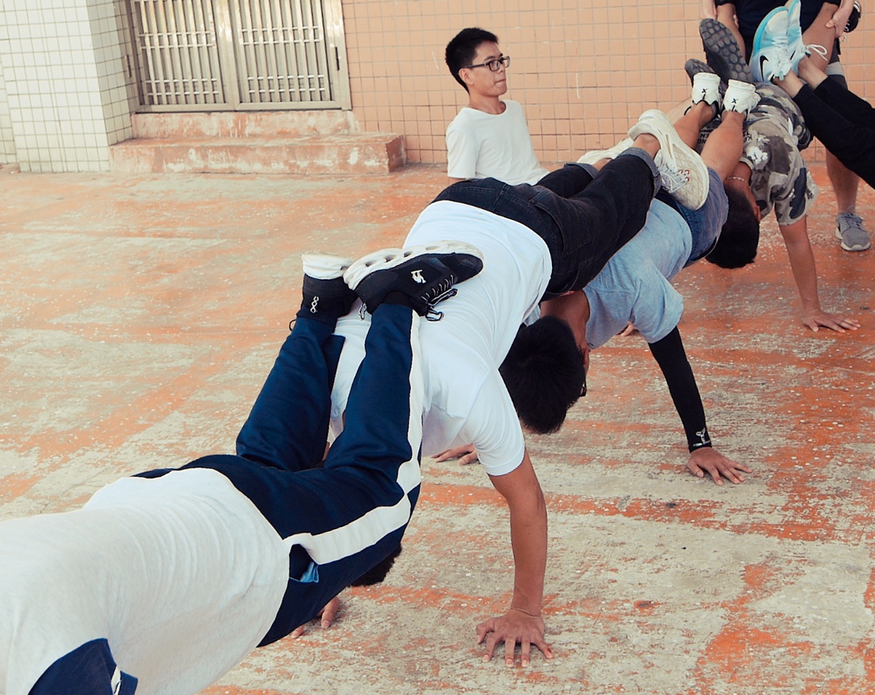 腿少人多——主持人说“六只脚”,各组就只能有六只脚着地,在5秒内达成主持人的要求并坚持5秒的小组为获胜。游戏当中,你出一技,我想一招,大家一起想办法达到脚的数量最少。或说你背着我,我扶住他,大家一同努力。更有小组独树一帜,以一只脚的极限达到最少脚的要求。各组欢笑嬉戏、不分彼此,相拥相闹。