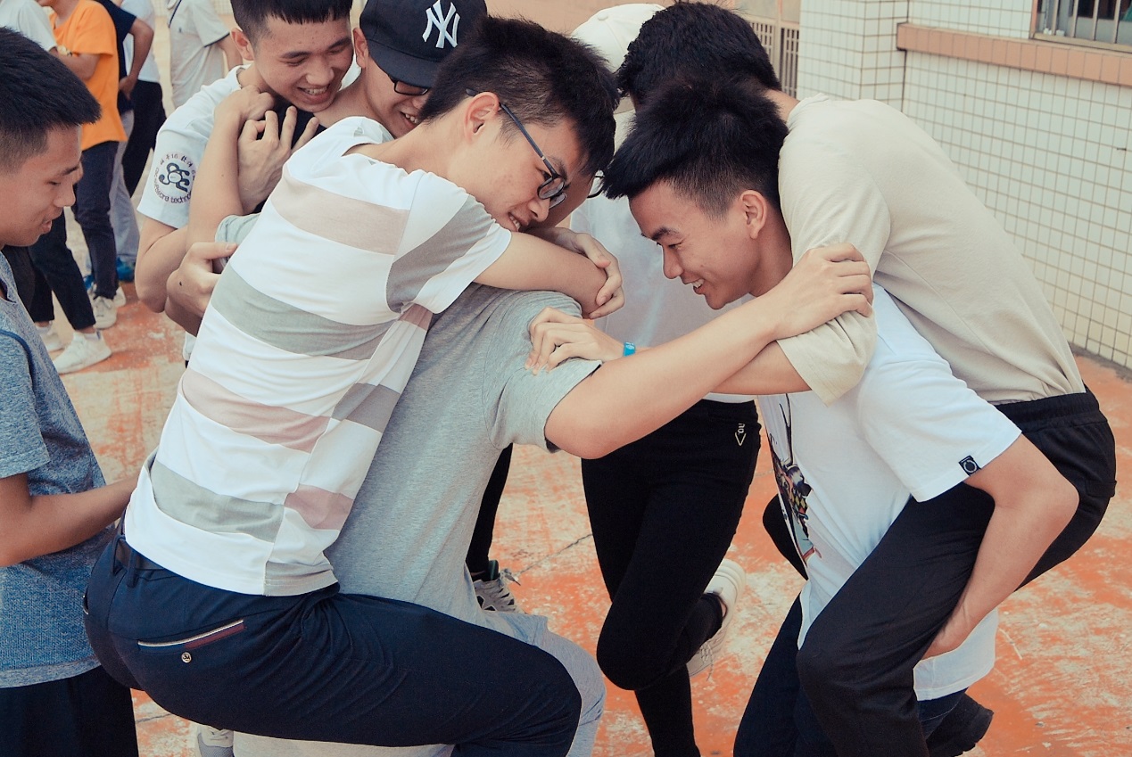撕名牌——背上贴着各自小组的名牌,撕下其他小组的名牌,直到剩下最后一个小组。烈日炎炎,却不能灼伤我们的热情。各组团结同心,共同作战,时而与其他小组结盟,时而分散突袭。你追我赶之中,欢声笑语不断。那些一时不留心被撕下名牌的成员,更是不甘被淘汰,组成第七组奔向场中,再次“厮杀”。无论胜负,玩的尽兴、玩的开心才是最重要的。