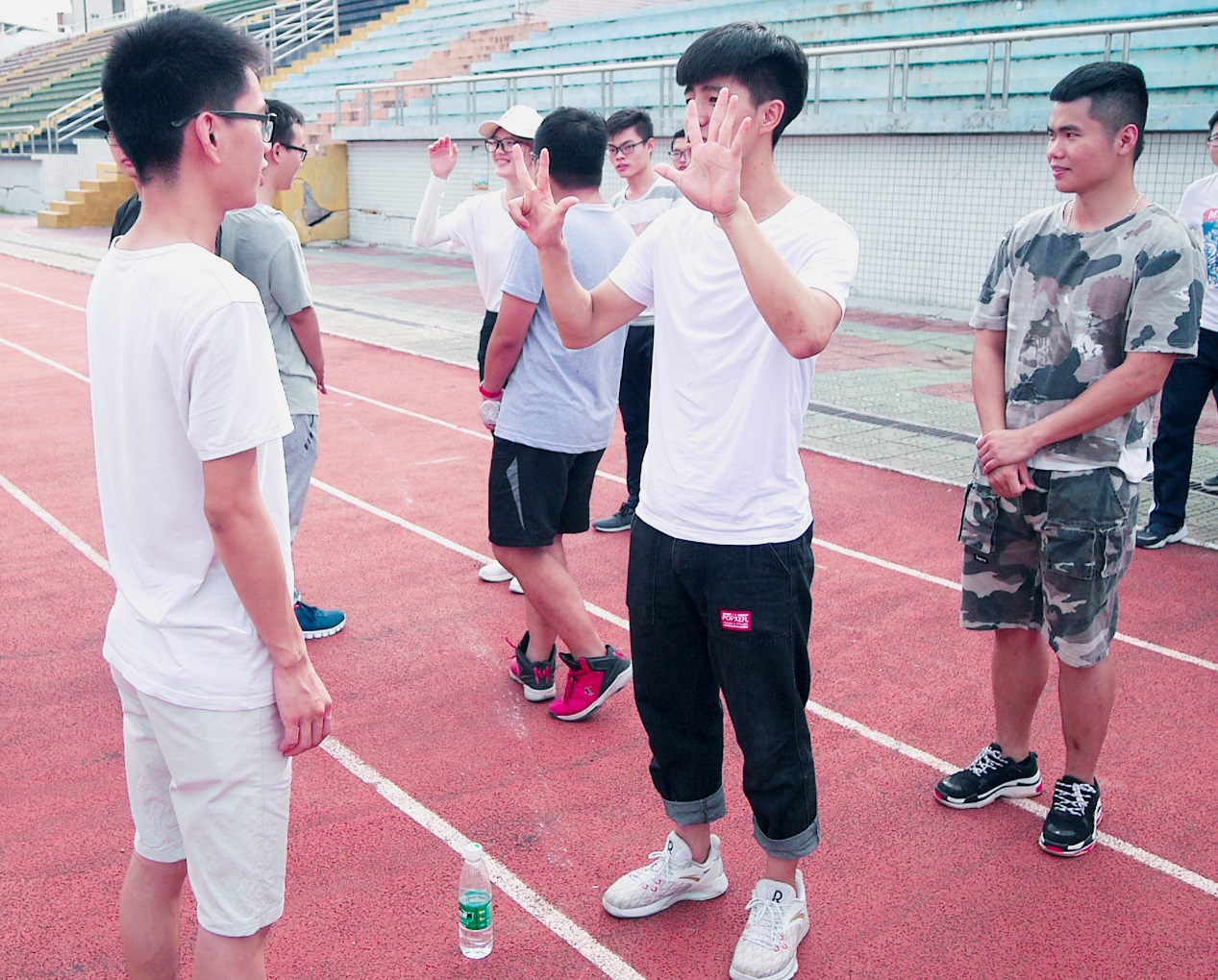 5月19日上午,计算机学院学生党支部的同学们在学校大操场进行团队素质拓展。本次素质拓展活动以“奔跑吧,青春”为主题,串连“动作传词”、“腿少人多”与“撕名牌”三个游戏。主持人胡嘉朗、杨霖霖充分调动大家激情,现场一片欢声笑语。