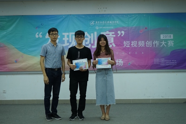 本站讯(通讯员:黄晓豪 摄影:兰香坤)2018年5月20日,由校团委主办、计算机学院团总支承办的广东科学技术职业学院第二届互联网+科技节2018“发现创意”短视频创作大赛在图书馆8楼学术报告厅拉开了帷幕。到场的评委嘉宾有校团委钟耀庆副书记,校团委冯昕盈副书记,校团委林海亮老师,计算机学院团总支书记郭悦川老师、计算机学院胡婷婷老师,珠海道心网络传媒有限公司林仲坚先生、刘定锟先生。