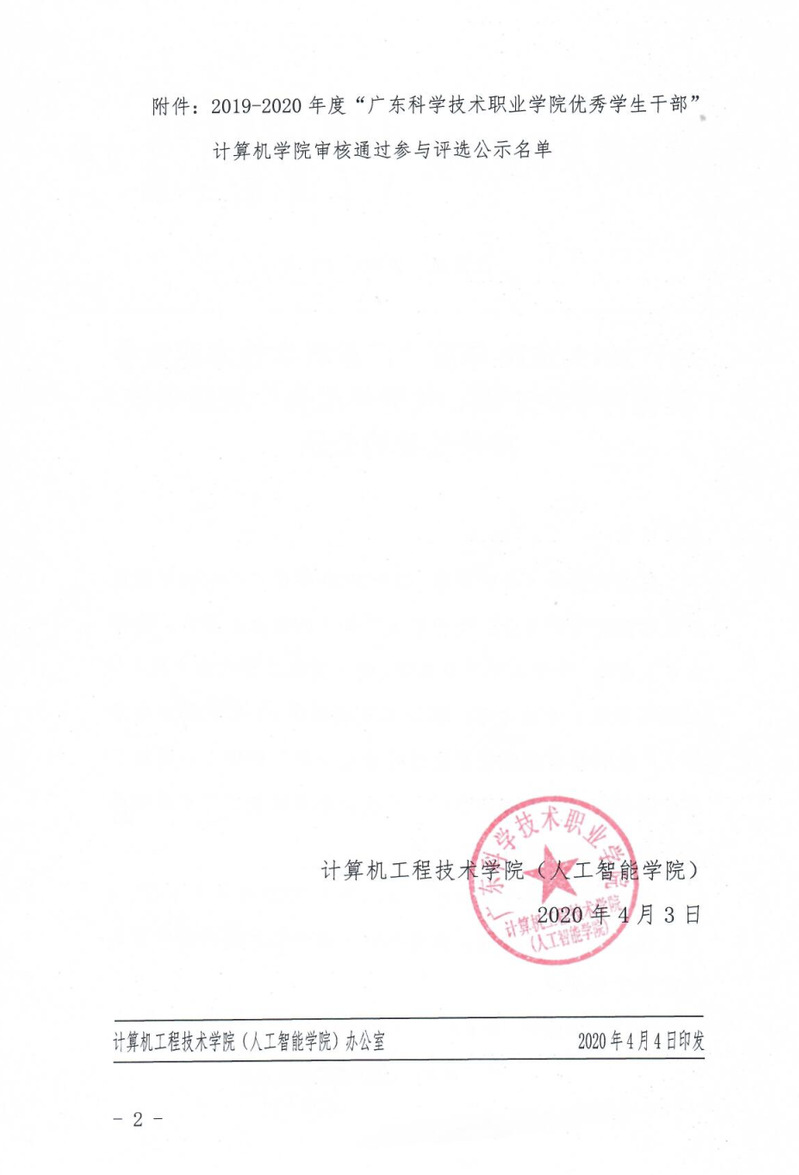 2019-2020年度“广东科学技术职业学院优秀学生干部、优秀学生会”