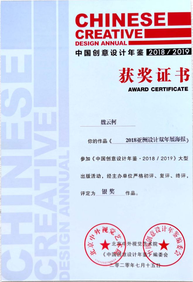 《中国创意设计年鉴》由设计领域知名设计家、理论家联袂主持,北京中外视觉艺术院、中外设计研究院、中国创意同盟网联合主编的大型年度出版物,迄今已连续出版七届。以其严谨的学术定位和先锋的设计品质,《年鉴》先后被北京大学图书馆、清华大学图书馆、复旦大学图书馆、同济大学图书馆、中国国家图书馆、首都图书馆、四川省图书馆等三十余家全国知名图书馆永久收藏,并将持续收藏每届《年鉴》。我校魏云柯老师4件获奖作品均为平面类作品,充分体现了软件技术高水平专业群UI设计岗位教师扎实的专业知识技能和素养。