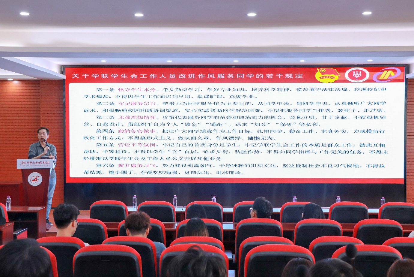 本站讯(通讯员:郭悦川 黄梓桦 吴伟霞 拍摄:传媒部)为学习贯彻习近平总书记致全国青联十三届全委会和全国学联二十七大贺信精神,落实共青团中央、教育部、全国学联联合下发的《关于推动高校学生会(研究生会)深化改革的若干意见》,11月5日下午,计算机工程技术学院(人工智能学院)团总支书记郭悦川带领学院学生团学干部、各班学生代表,在J3-311学术报告厅开展“全国学联二十七大精神”学习会。