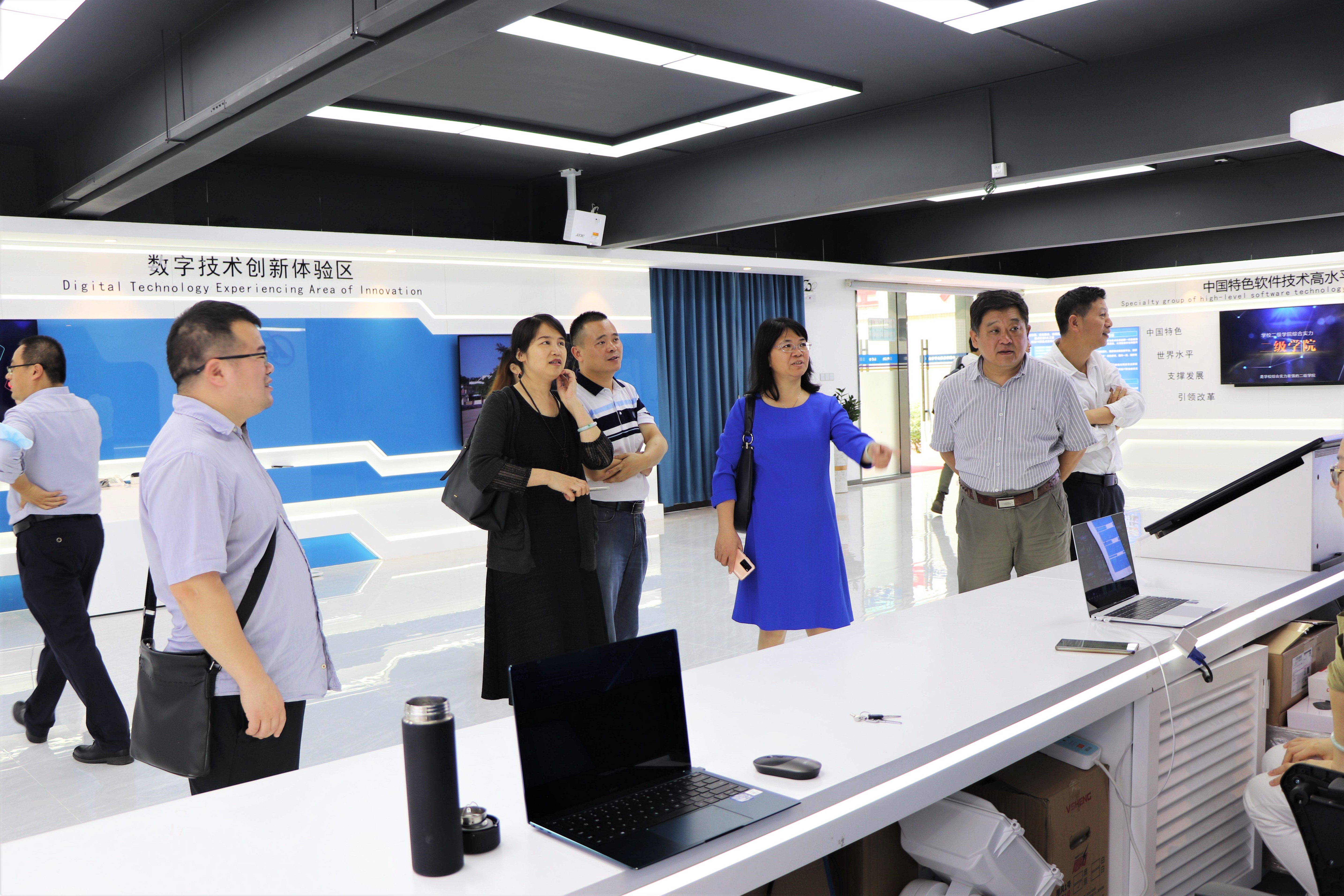 会后,大家参观了计算机学院实践教学基地和华为鲲鹏数字产业学院。陆艳梅副书记、何小苑副主任等同仁对基地建设取得的成果表示高度赞扬。