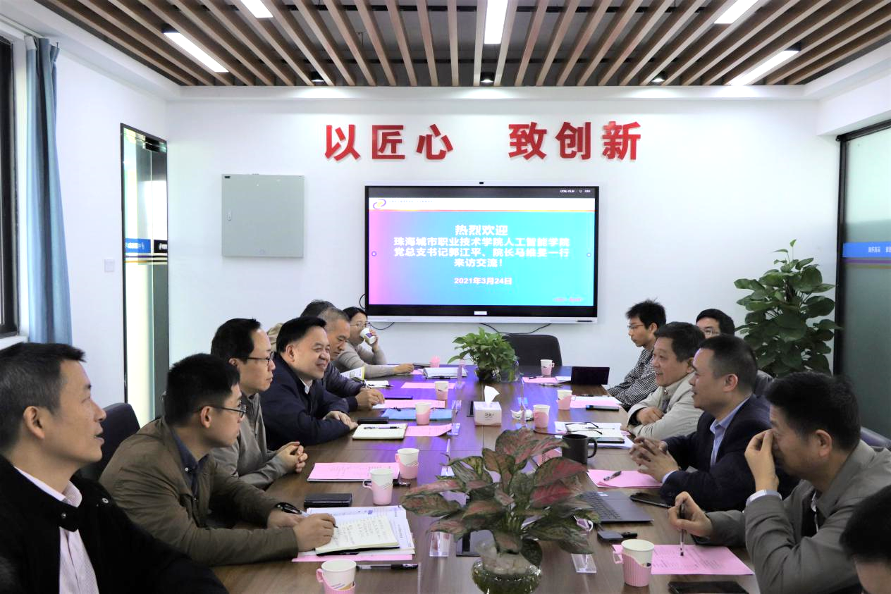 本站讯(通讯员:蒋小波 摄影:王骥)2021年3月24日上午,珠海城市职业技术学院人工智能学院党总支书记郭江平教授、院长马维旻教授一行9人莅临计算机学院调研交流,调研交流主要围绕高水平专业群项目建设与管理、二级绩效考核、中层干部管理、产学研合作以及实践教学基地建设等。交流会由学院院长曾文权教授主持,党总支书记齐向东,副院长康玉忠、张军,办公室主任蒋小波,学工部轮值部长邵引印等参加了交流。