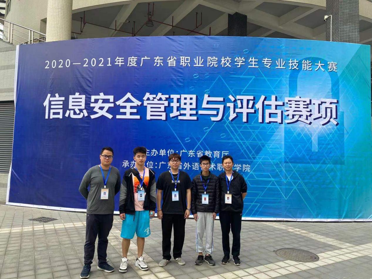 近日,由广东省教育厅主办的2020-2021年广东省职业院校学生专业技能大赛信息安全管理与评估赛项在广东省外语艺术职业学院成功举行。由计算机学院叶和平、余振养老师指导,李志勇、罗为明、吴俊业同学组成参赛团队荣获一等奖。