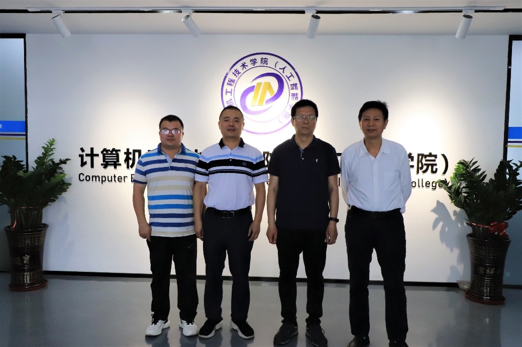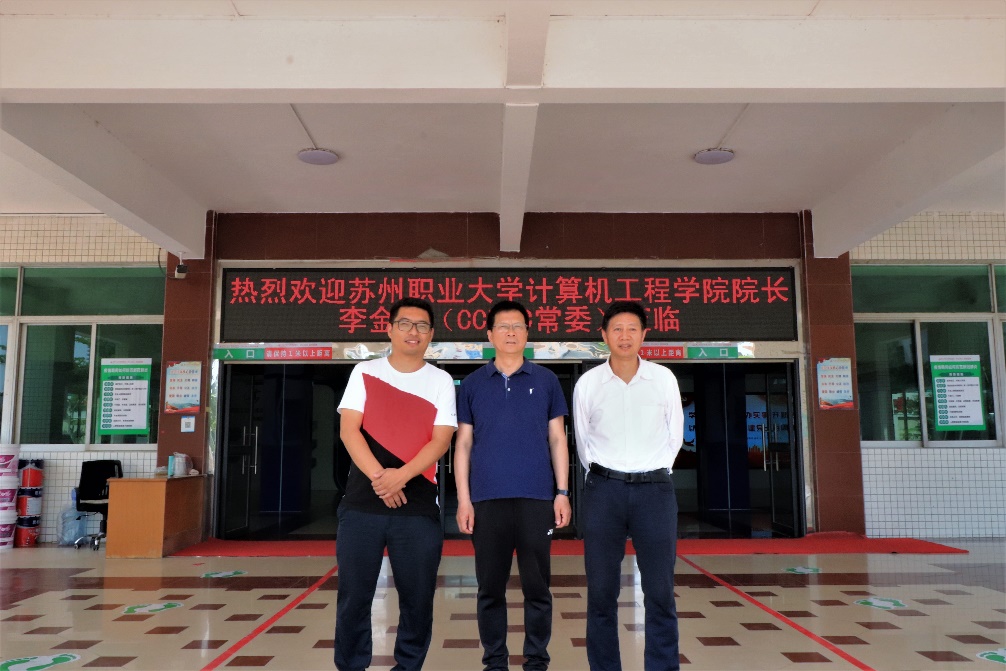 本站讯 4月12日,苏州职业大学计算机工程学院院长李金祥来院交流。计算机工程技术学院院长曾文权、副院长康玉忠、办公室主任蒋小波、人工智能应用专业主任苑占江参加交流。