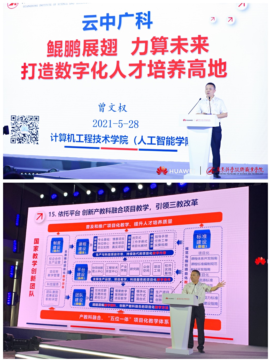 坚持文化润院,至臻匠心育人。计算机学院院长曾文权教授受邀与华为公司技术专家、智慧教育产业生态伙伴,共同就推动“云中高职”战略落地进行了深入研讨。曾文权以“构建项目化教学体系 打造数字化人才培养高地”为题作专题汇报。他指出,大湾区高端产业发展亟需数字化高技能人才,自2020年4月学校与华为签订战略合作协议以来,双方联合发起“云中高职研究院”,创建职业教育大数据研究院,携手共建鲲鹏数字学院;围绕鲲鹏人才培养,共建智慧教学实训室,创新信息化、数字化教学方法;共建数字创新工场实践基地,打造结构化混编团队,实施产教科融合的项目化教学;融入华为文化,共同打造了校企合作样板—“云中广科”。双方将在产教融合新平台和云中教学新标准领域共同努力,打造出数字化人才培养高地,为高职教育“三教”改革提供示范。
