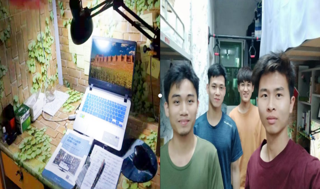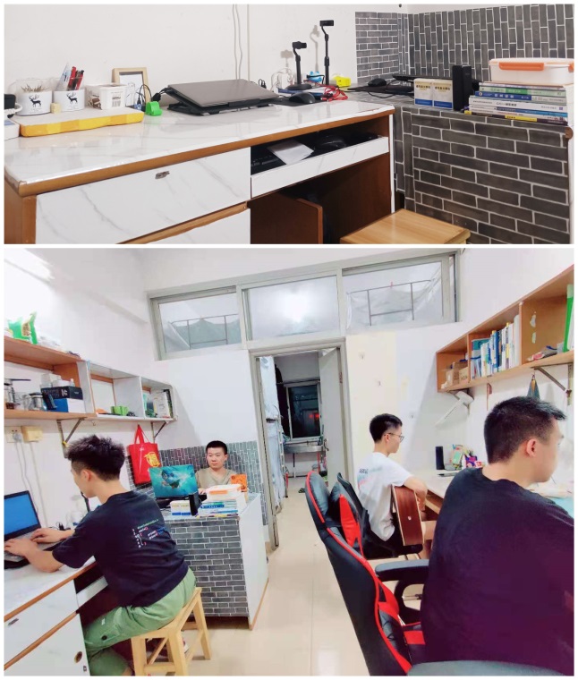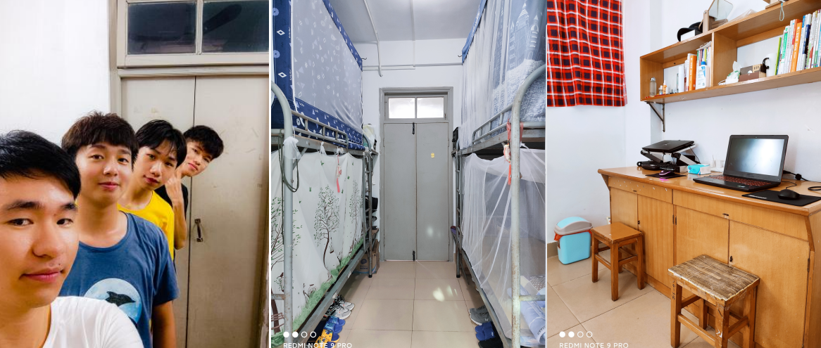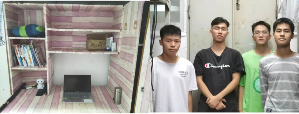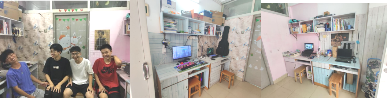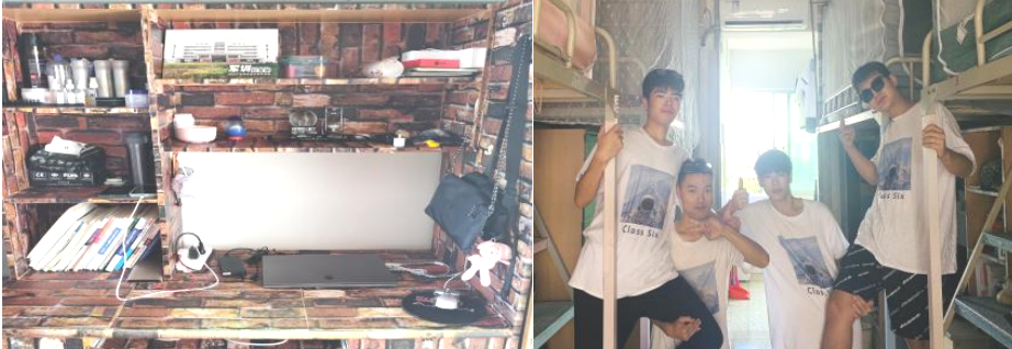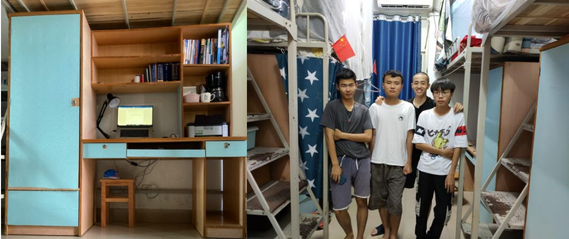 14栋205:四位青年因程序相聚,因代码结缘,整个宿舍弥漫着浓厚的学习气氛。宿舍采用传统式的摆放方式,这不仅增加了大学宿舍氛围,而且还让宿舍扩大了不少空间,这让我们的大学宿舍生活十分愉悦和舒适。