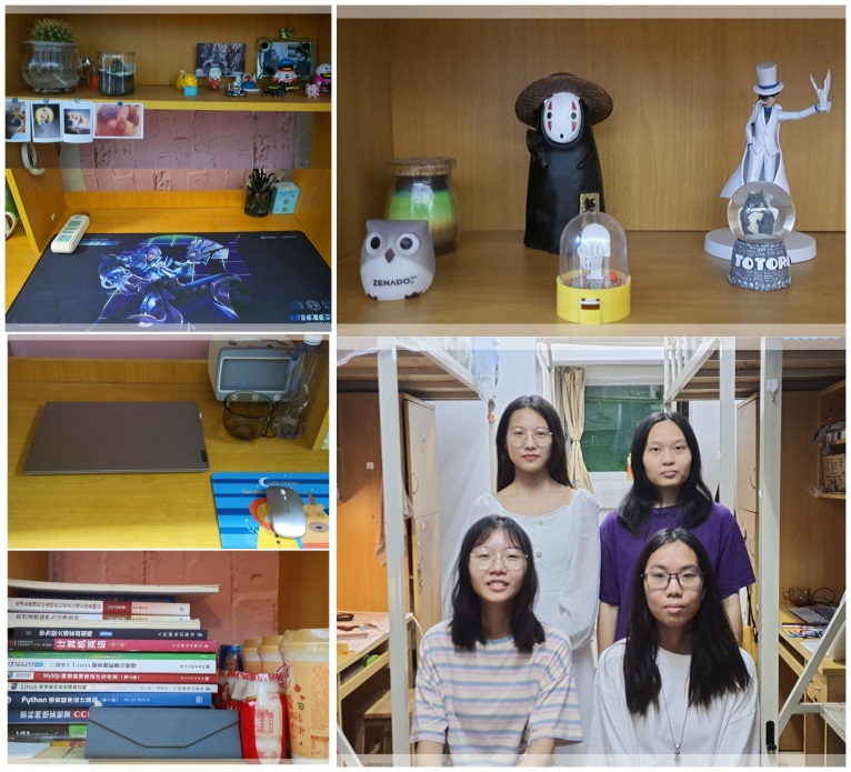 17栋222:四个人,四种性格,相互碰撞出多种不同的火花。四个人能在学习方面相互督促,学中乐,乐中学,在干净整洁的宿舍环境中共同进步。