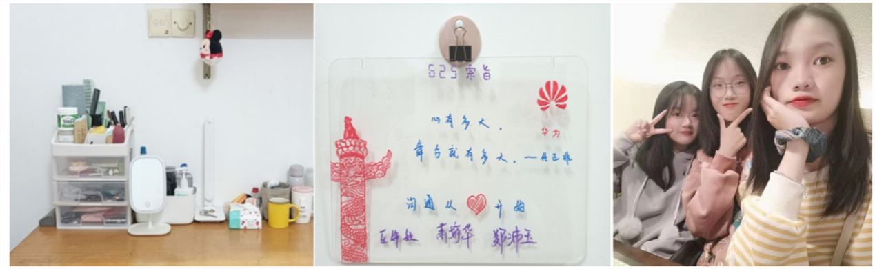 20栋616:宿舍是我们的家,也是梦开始的地方,不管是在学习、生活,我们都彼此团结、互帮互助、共同进步,彼此在走好美好的今天同时追求更美好的明天!在选择宿舍物品时,我们一直坚持性价比高,有利宿舍的物品摆放,能让宿舍变得更加温馨,美好!