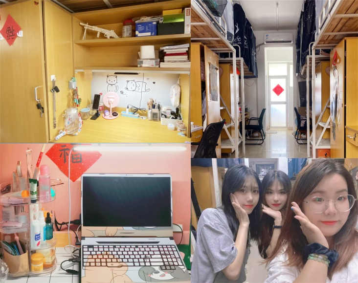 我们来自不同的地区,不同地域的文化习俗给我们的生活带来了许多欢乐。从我们成为这宿舍的一员起,我们相约一起努力学习,一起幻想未来美好生活,至今已经一起生活了两年,如同家人一般相亲相爱。宿舍卫生坚持每日清扫,保持整洁,有一个良好的宿舍环境。