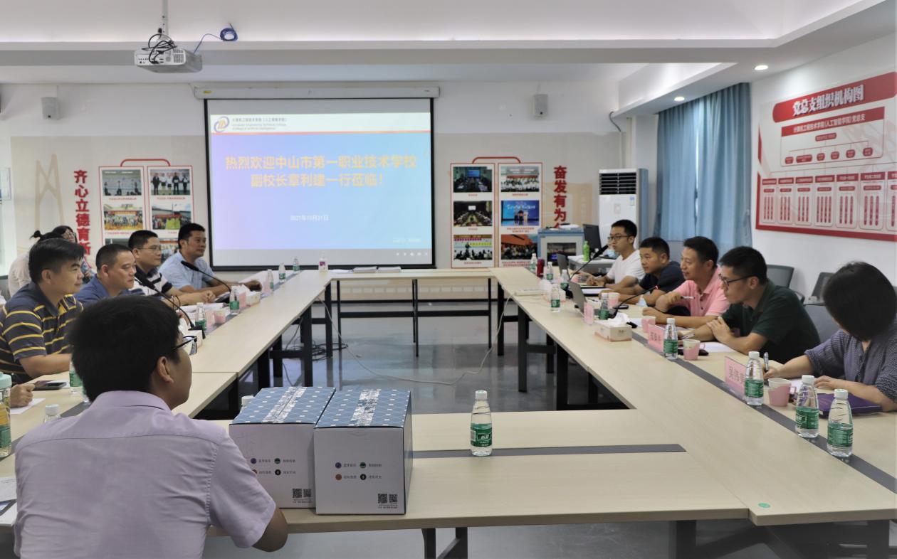 本站讯 2021年10月21日上午,中山市第一职业技术学校副校长章利建一行25人到计算机学院调研交流,学院党总支副书记、副院长康玉忠主持了交流会,创新创业教研室副主任郑燊浩、骨干教师熊翌竹、姜晔、吴伟美、陶玲等参加了会议。
