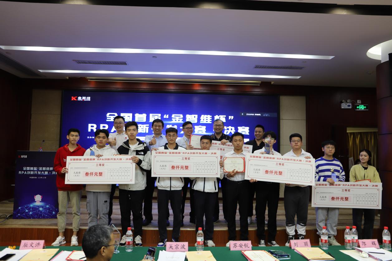 12月12号,金智维举办了首届“金智维杯”RPA创新开发大赛决赛,全国总共有8支队伍入围,我校学生万秀生等组成的团队与全国本科、研究生代表队同场竞技,喜获三等奖,并获奖金3000元。