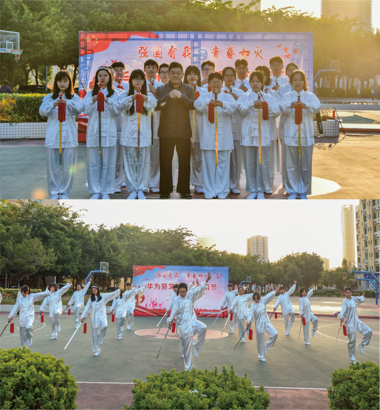 浑厚太极文化底蕴,凸显华为苑文化特色。此次文化体育艺术节在刚柔并济、气势如虹的太极剑晨练中正式启程!伴随着悠扬婉转的清晨鸣笛,身着太极服的华为苑鸿蒙太极队大学生学子在操场上精彩亮相,仙人指路、青龙出水、金鸡独立、......一套剑法行云流水、引人入胜,通过体育锻炼活动磨炼意志品质,提高抗挫折能力和团队合作能力,养成锻炼习惯,充分展示了华为苑社区健康积极、乐观向上的精神风貌,同学们在传承中华优秀传统文化的同时锻炼了身体、愉悦了身心、提升了精气神。