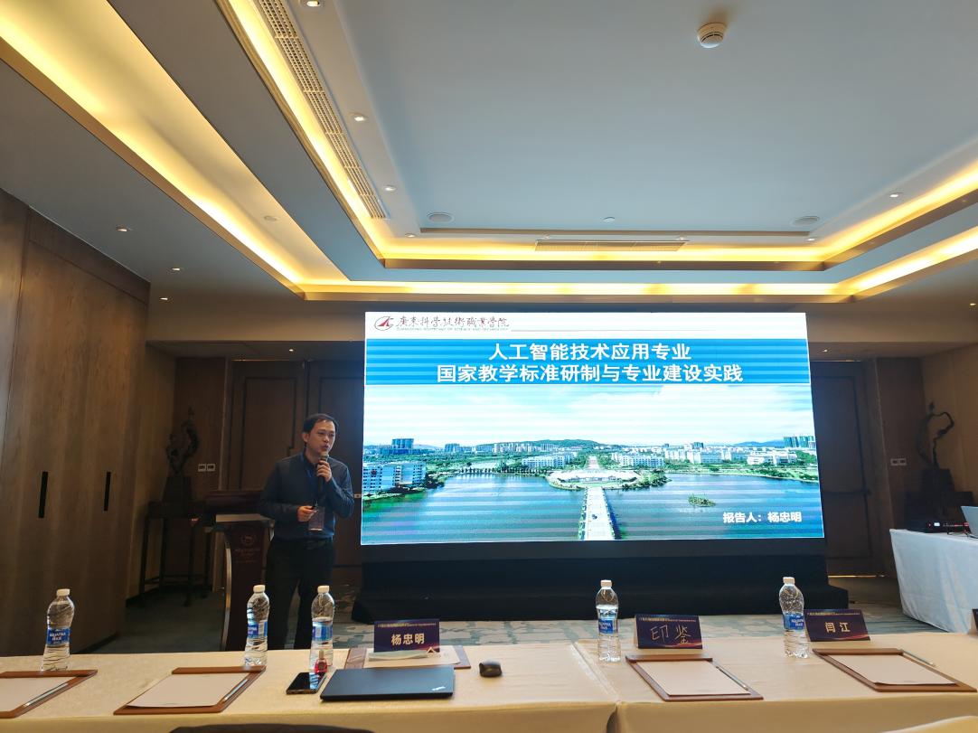 12月26号计算机学院副院长杨忠明教授应邀在人工智能技术应用分论坛上作了“人工智能技术应用专业国家教学标准研制与专业建设实践”报告,结合人工智能技术应用专业国家教学标准研制情况和专业建设实践,分享国家教学标准研制主要过程经验,通过调研数据梳理了人工智能技术高职本科和高职专业的职业面向;通过人工智能国家思政示范课程建设案例,展示融入企业真实项目进行课程教学设计与实施成果,最后介绍了中国特色高水平专业群-人工智能技术应用专业改革建设成效,为各参会院校人工智能技术专业人才培养提供了参考和借鉴。