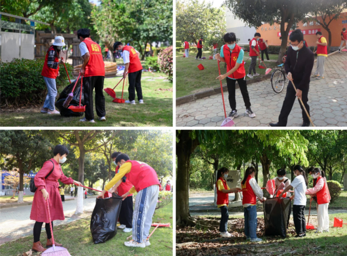 在公寓周围、社区运动场、道路和绿化带中,志愿者们发扬不怕苦不怕累不怕脏的精神,帮助同学们创造更干净整洁的社区和宿舍环境。经过2个多小时的辛勤劳作,华为苑社区和学生宿舍焕然一新,令人心旷神怡。